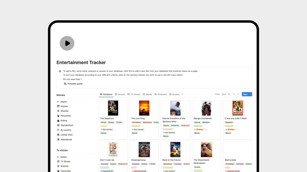 Add Easily: To add a film, series, book, podcast or quotes to your database, simply click “add a new item” into your database.